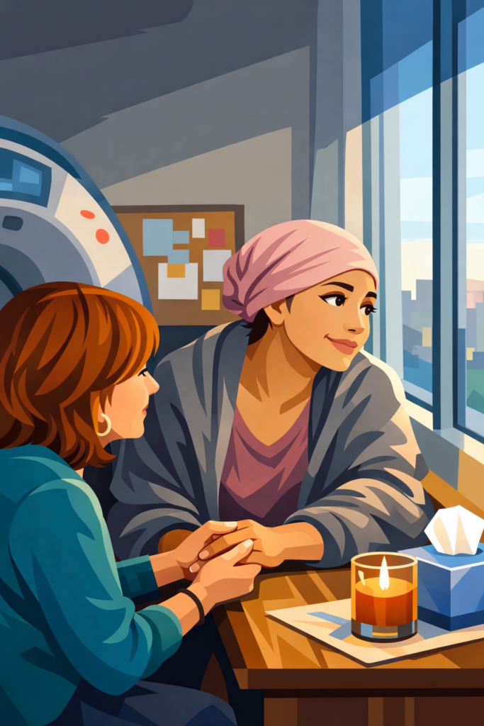 She assumed it meant she was “not coping well enough.” What it actually offered was a way to move through treatment with steadier footing — and her story reflects something many patients experience but rarely name.